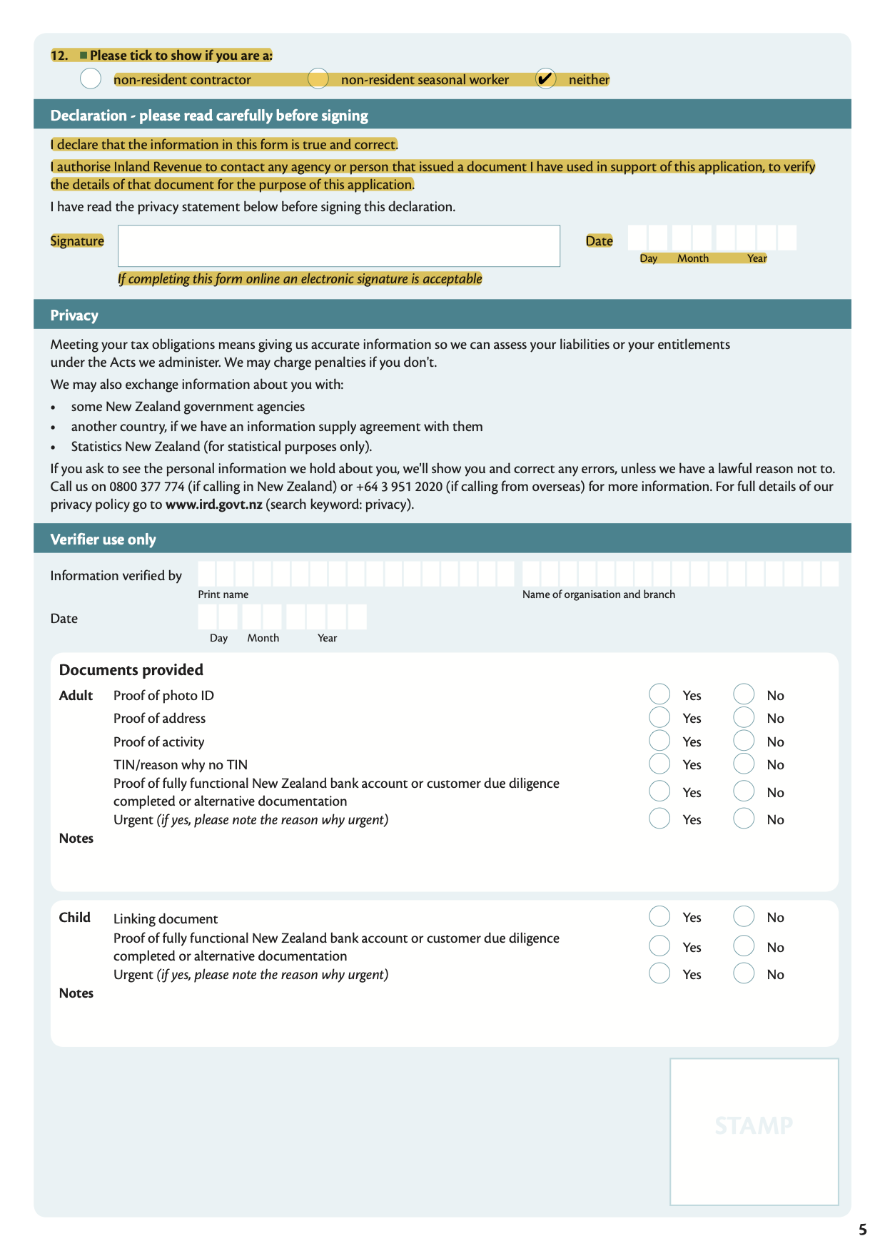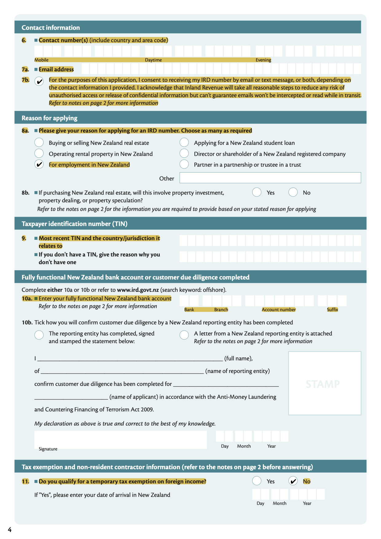 - 8a: Reason for applying for IRD number
