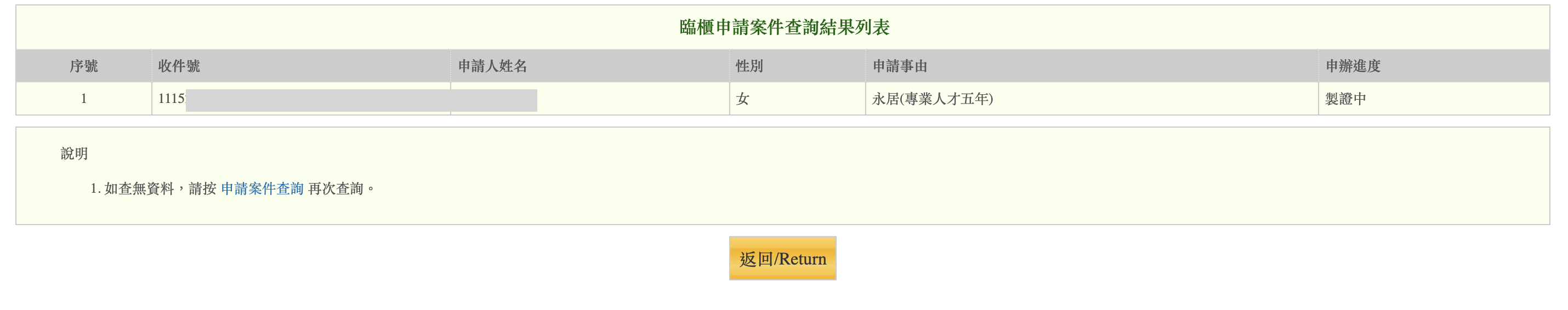 Inquiry method: https://egate.immigration.gov.tw/NIA_OnlineApply_inter/caseQuery/caseQueryForm.action